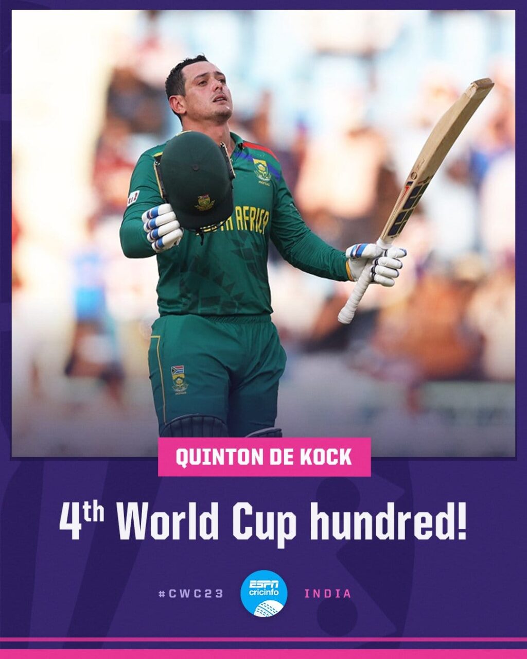 साउथ अफ्रीका के विस्फोटक ओपनिंग बल्लेबाज क्विंटन डि कॉक ने वर्ल्ड कप 2023 में अपने शतकों के चौके से इतिहास रच दिया