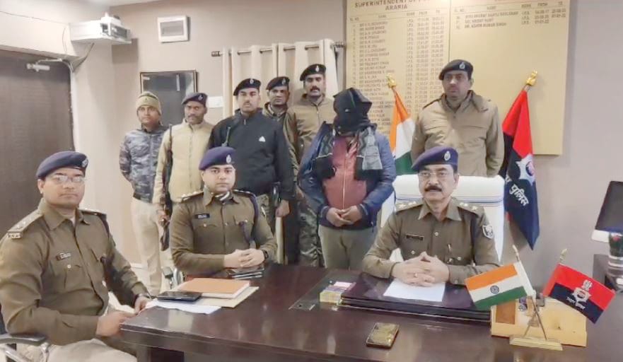 अररिया में भाजपा नेता पर गोली चलाने वाला आरोपी गिरफ्तार,एक पिस्टल,एक देशी कट्टा और पांच खोखा बरामद