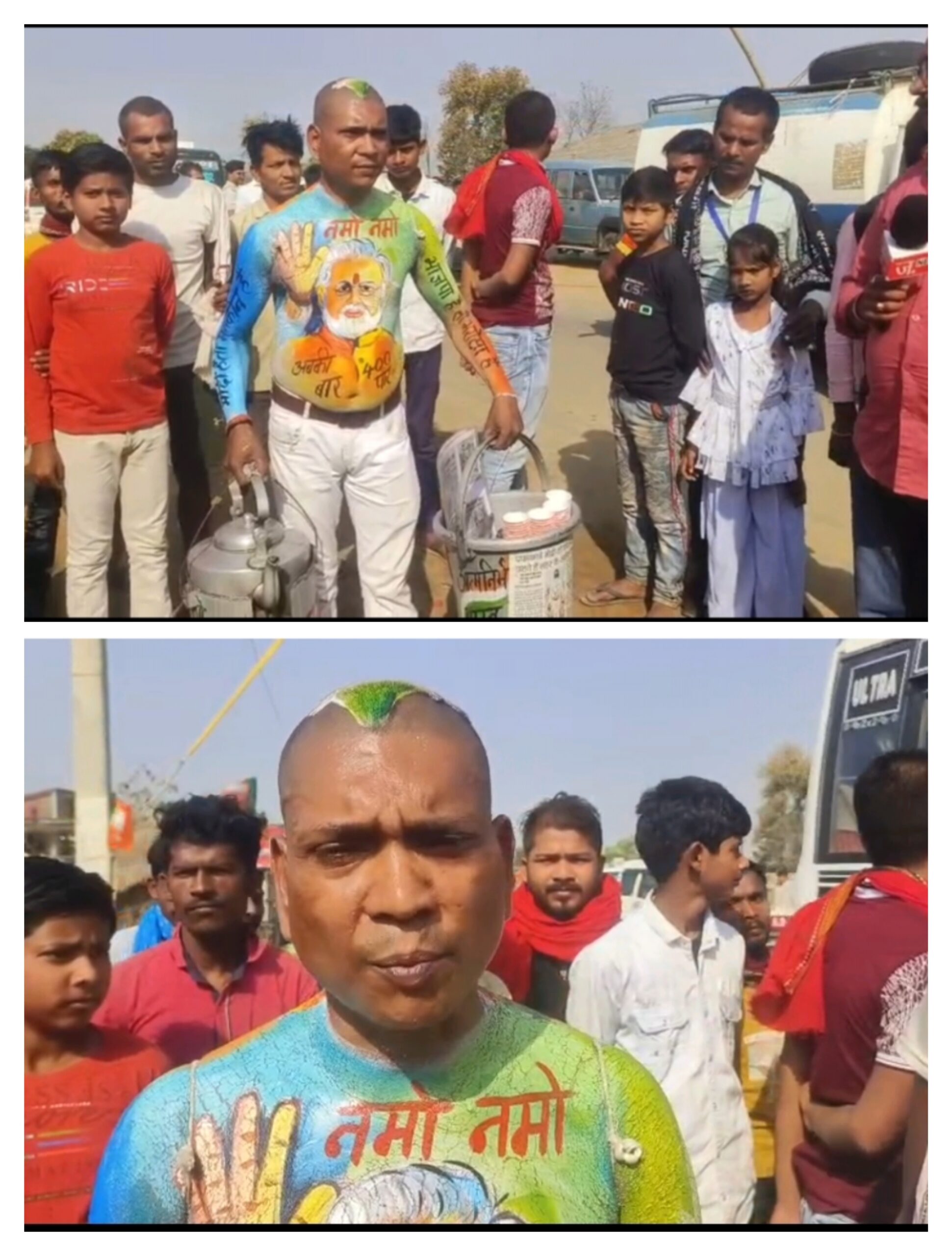 पटना(बिहार)।जमुई जिले में पीएम नरेंद्र मोदी के कार्यक्रम की सभा आज होने वाली है।उनके चाहने वाले मुजफ्फरपुर के अशोक साहनी,जो कि चाय बेचकर अपना जीवन पालन करते हैं, उनका सपना है कि हमारे हाथ से बना हुआ एक कप चाय पीएम नरेंद्र मोदी जी पियेंगे तब मेरा सपना जाकर के पूरा होगा।आपको बता दें कि यह सपना लेकर 7 सालों से जहां मोदी जी का कार्यक्रम होता है वहां अपने शरीर पर टैटू बनाकर के चाय बेचने के लिए चले जाते हैं।इसी तरह एक जीता जागता उदाहरण जमुई जिला में देखने को मिला जहां की 4 अप्रैल को मोदी जी का सभा होनी हैं उसी जगह पर मुजफ्फरपुर से चलकर मुकेश सहनी अपने शरीर पर पूरी टैटू बनाकर यहां भी अपना सपना पूरा करने के लिए चाय लेकर आए हैं।अब देखना है कि मुकेश साहनी का यह सपना कब तक पूरा हो पाता है।