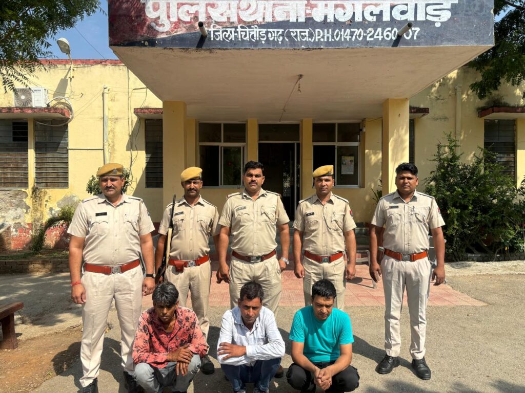 जयपुर/चित्तौड़गढ़।चितौड़गढ़ के पुलिस थाना बड़ीसादड़ी में 100 किलोग्राम डोडा चूरा के मामले मे 3 साल से फरार पांच-पांच हजार रूपये के ईनामी तीन वांछित आरोपियों को प्रतापगढ़ जिले के सेमरडा थाना छोटीसादडी निवासी दुर्गेश पुत्र सुजानमल पाटीदार,मदन पुत्र सुजानमल पाटीदार व रामदेवजी स्वरूपगंज थाना छोटीसादडी निवासी पुष्कर पुत्र अमृत लाल सुथार को पुलिस की विशेष टीम ने छोटीसादडी से गिरफतार किया है।पुलिस अधीक्षक सुधीर जोशी ने बताया गया कि वर्ष 2021 मे थानाधिकारी बड़ीसादड़ी ने थाना क्षेत्र में नाकाबंदी के दौरान सरथला गांव चौराहे से एक मारूती स्वीप्ट डिजायर कार में भरा हुआ 100 किलोग्राम डोडा चूरा को जब्त किया था। प्रकरण का अनुसंधान थानाधिकारी मंगलवाड द्वारा किया जा रहा था।मामले में थानाधिकारी मंगलवाड द्वारा अनुसंधान के दौरान पूर्व में दो आरोपियों डूंगला थाने के बाघपुरा अरनेड़ निवासी राजु सिंह पुत्र नारायण सिंह रावत व पालोद थाना डूंगला निवासी हिम्मत लाल गर्जर पुत्र भैरूलाल गुर्जर को गिरफतार कर न्यायिक अभिरक्षा मे भिजवाया गया था।इसी मामले मे दुर्गेश पाटीदार,मदन पाटीदार व पुष्कर सुथार फरार चल रहे थे।इनकी गिरफ्तारी पर पुलिस अधीक्षक कार्यालय से पांच-पांच हजार रूपये का ईनाम घोषित किया गया। आरोपियों की गिरफ्तारी के लिए एएसपी परबत सिंह व डीएसपी निम्बाहेड़ा बद्री लाल राव के निर्देशन में थानाधिकारी कोतवाली निम्बाहेडा रामसुमेर,थानाधिकारी सदर निम्बाहेडा संजय शर्मा व थानाधिकारी मंगलवाड रामसिंह द्वारा एक विशेष टीम एएसआई सूरज कुमार व लेखराज,हैड कांस्टेबल राकेश,देवेन्द्र, विरेन्द्र,राकेश,सुरेन्द्र पाल,रतन,मुकेश व करनल की गठित की गई।टीम को सूचना मिली कि वांछित आरोपी दुर्गेष,मदन, पुष्कर तीनो दिन मे घर से बाहर रहते है,केवल दोपहर मे अपने अपने घर खाना खाने आते है।इस पर एएसआई सूरज कुमार मय टीम द्वारा सूचना के अनुसार दिन के समय करीब 12 से 2 बजे के बीच आरोपियों के निवास पर पहुच तीनो आरोपियों को डिटेन कर थानाधिकारी मंगलवाड को सपुर्द कर दिए।
