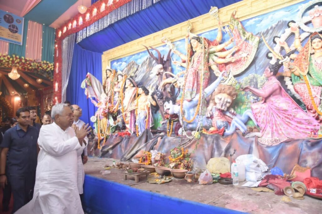 यहां से मुख्यमंत्री नीतीश कुमार लंगरटोली स्थित बंगाली अखाड़ा दुर्गा मंदिर गए जहां उन्होंने देवी दुर्गा के महागौरी स्वरूप के दर्शन किए।इसके पश्चात् मुख्यमंत्री नीतीश कुमार ने बांस घाट स्थित काली मंदिर जाकर शक्ति की देवी माँ दुर्गा के दर्शन किए और पूजा अर्चना की।