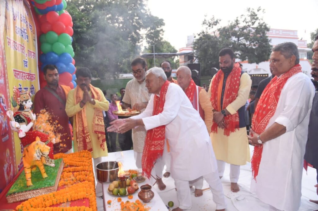 पटना(बिहार)।मुख्यमंत्री नीतीश कुमार आज उप मुख्यमंत्री विजय कुमार सिन्हा के सरकारी आवास 3 स्ट्रैण्ड रोड में शारदीय नवरात्र के अवसर पर आयोजित महाआरती एवं जागरण कार्यक्रम में शामिल हुये।मुख्यमंत्री ने मां दुर्गा की आरती एवं पूजा अर्चना की।